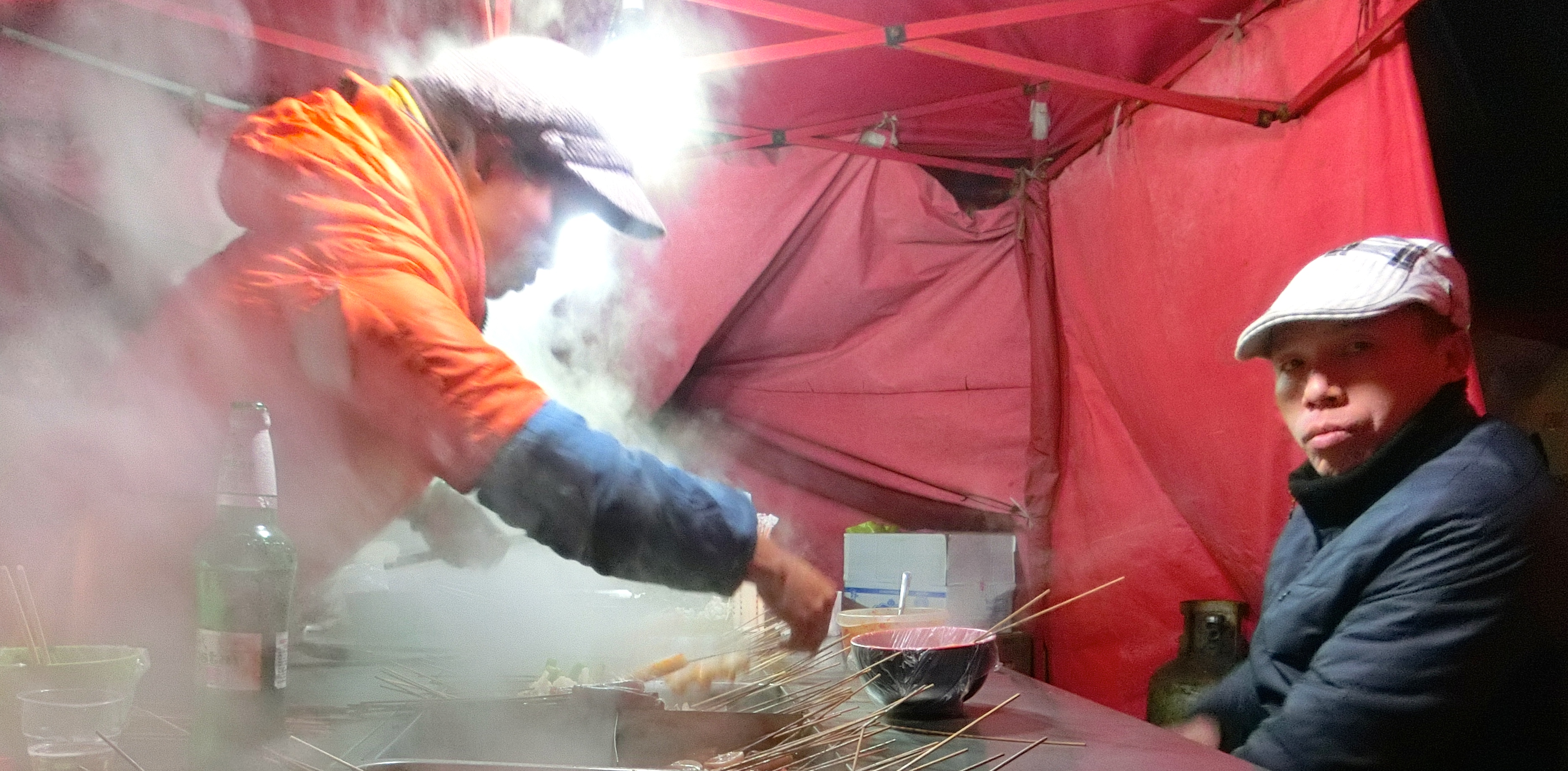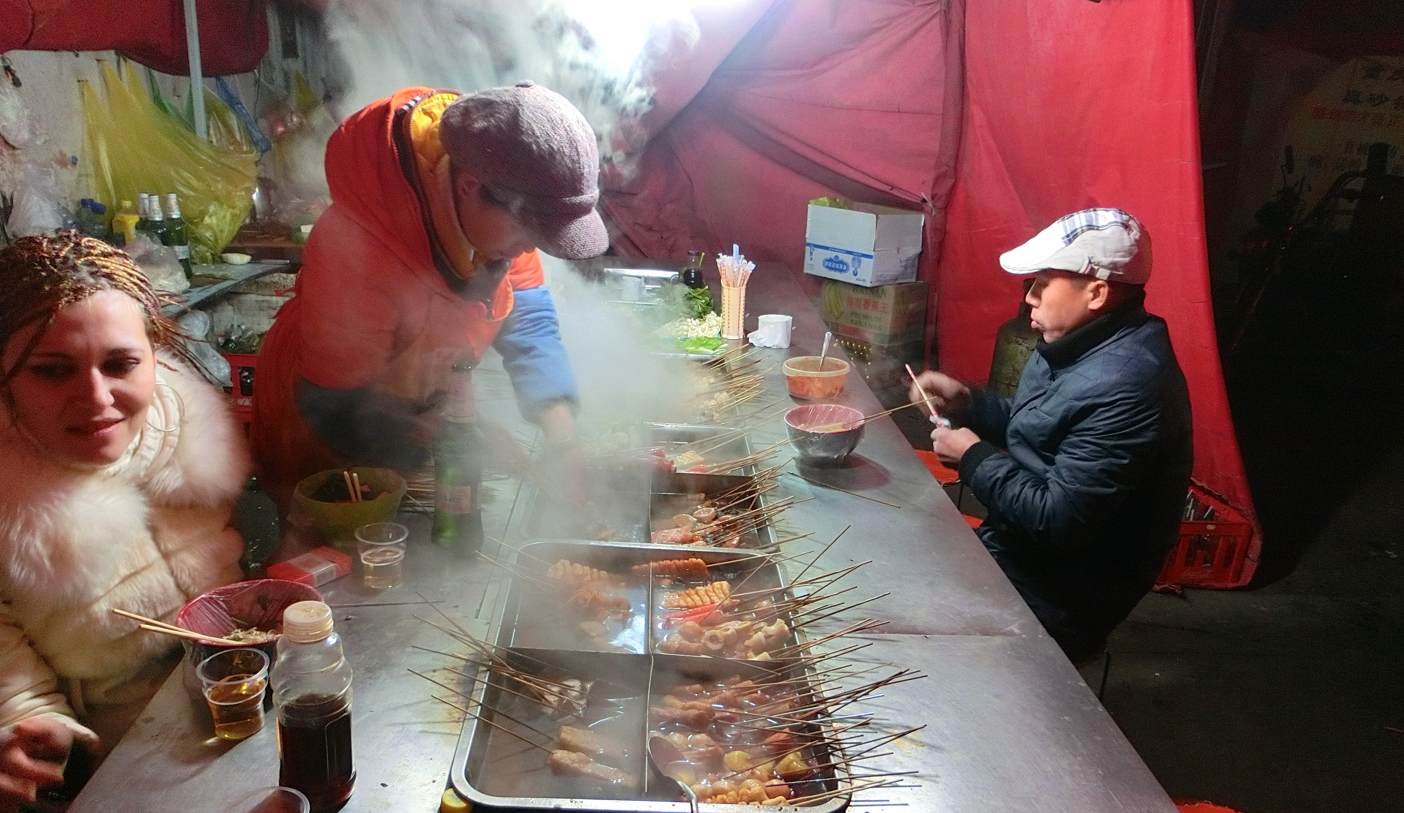 This is a Hot Pot tent that was open at five in the morning. It isn’t exactly the cleanest of choices when it comes to having hot pot but it is an experience. My friend and I met a Russian woman and her Chinese boyfriend and they led us down a dirty alleyway to this tent.