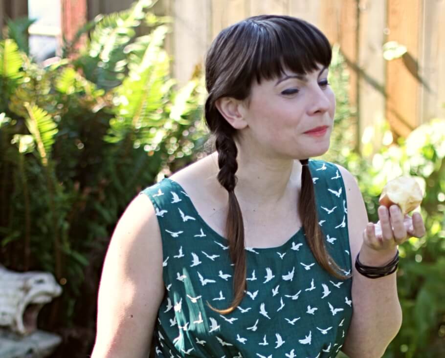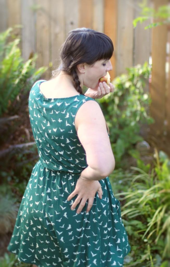 Obviously, the apple eating photos were not used on the website for the store, and were not even a part of the intention of the shoot in the first place, but these are the ones that I liked the most for this dress. From a commerce standpoint these photos are an utter failure. Do you even notice the dress? Maybe, but unlikely. Your eyes go to the apple and the biting and the crinkle of her nose as her teeth sink into the flesh of the apple.