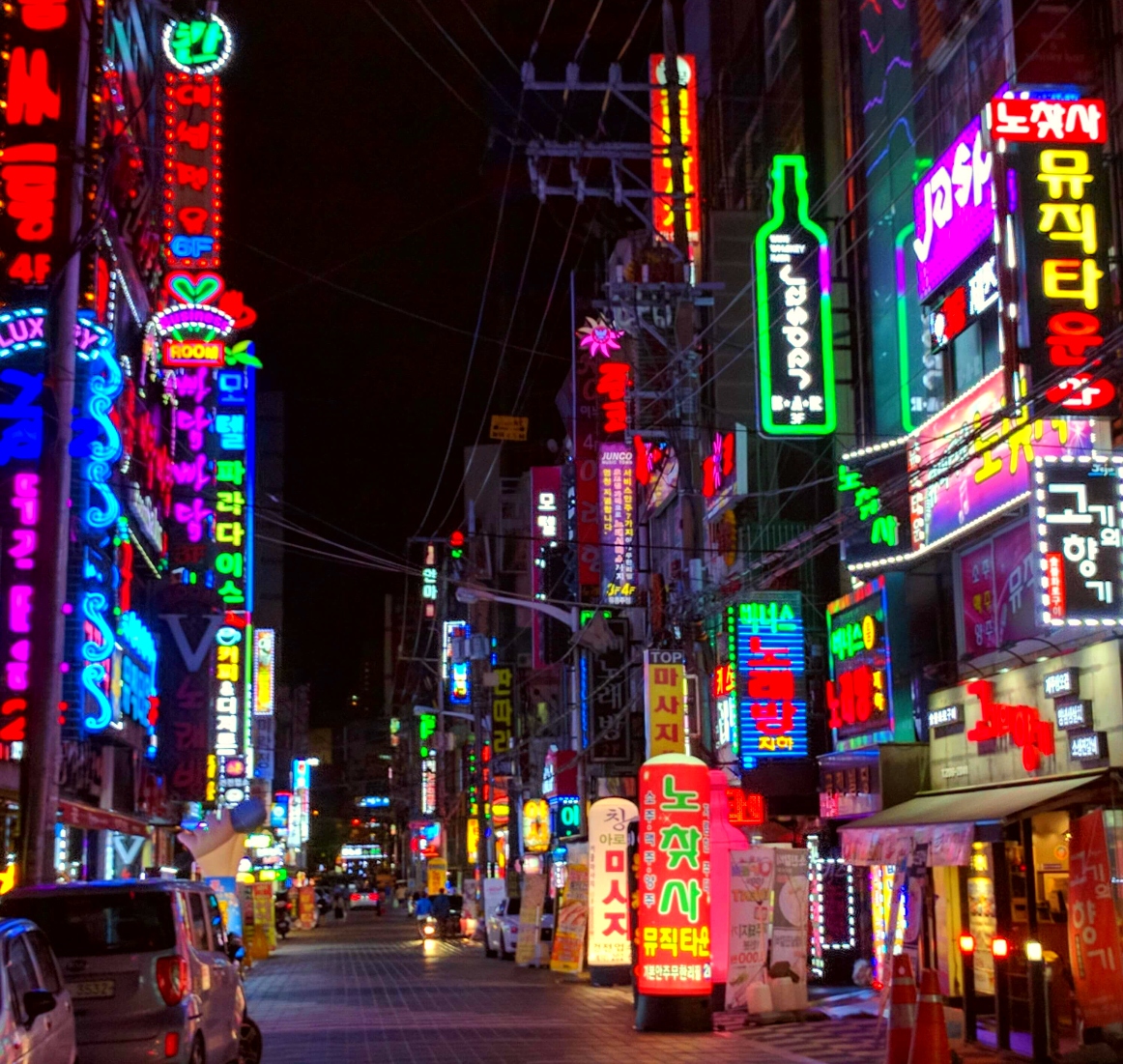 I wouldn’t, however, give any false impression that it’s the safest place. Just google “Burning Sun scandal” to get a sense of what I mean. Yet most of those neon-lit side streets led simply to lively restaurants, fun noraebangs for belting out tunes, or pojangmachas – tented stalls selling soju and banchan (Korean side dishes). Rarely did I feel unsafe, though a few areas set off my “spider senses” – the surroundings of Busan’s train station and pockets of my own Saha-Hadan neighborhood.